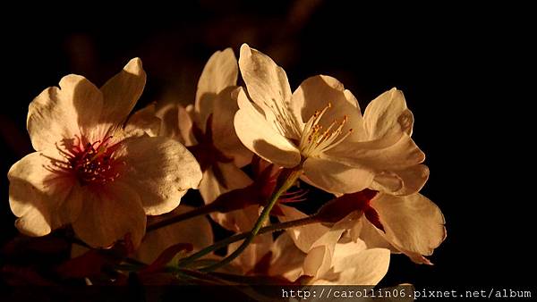 難得找到比較亮一點的位置可以拍櫻花特寫,櫻花在黑夜的襯托下真的好美