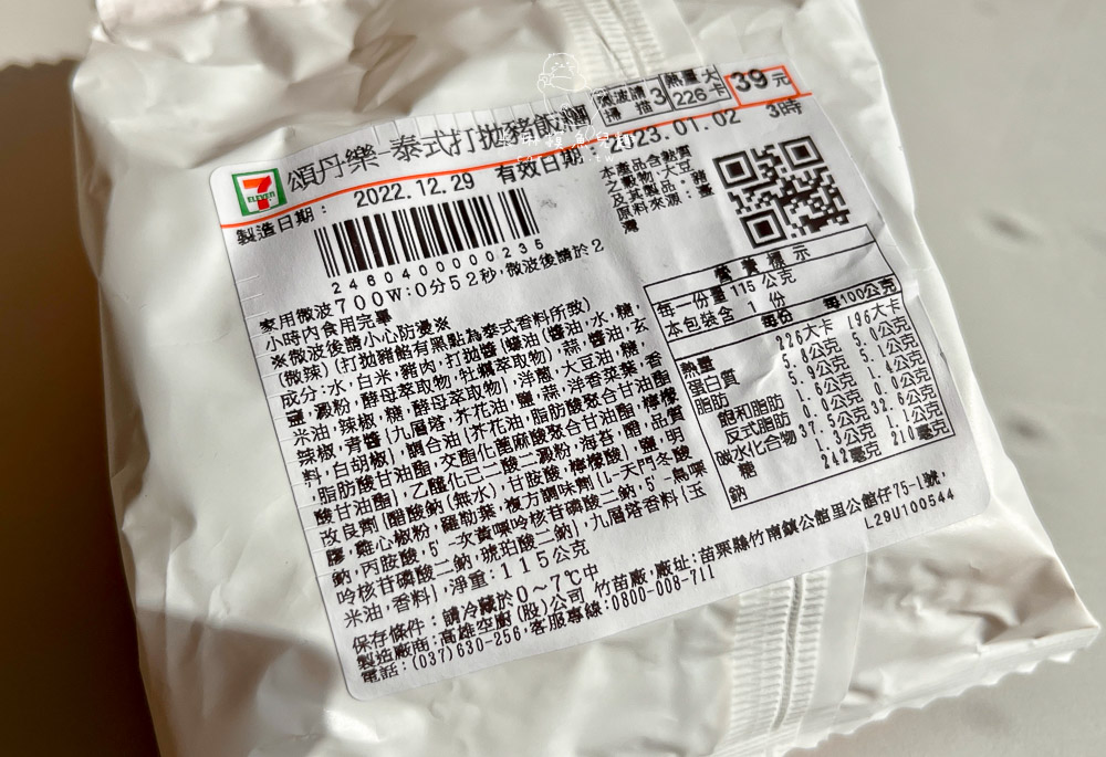 7-11 和頌丹樂聯名的泰式打拋豬飯糰,整體來說吃起來還不錯。