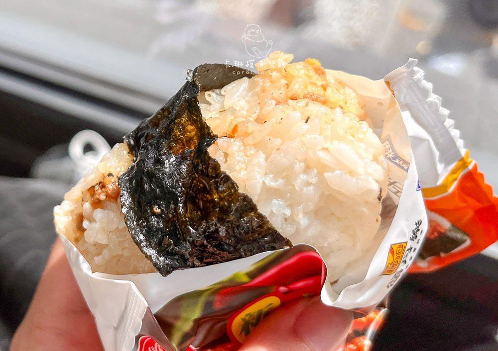不過微波加熱後,圈著飯糰的海苔整個受潮軟掉,其實我覺得海苔存在有點雞肋。