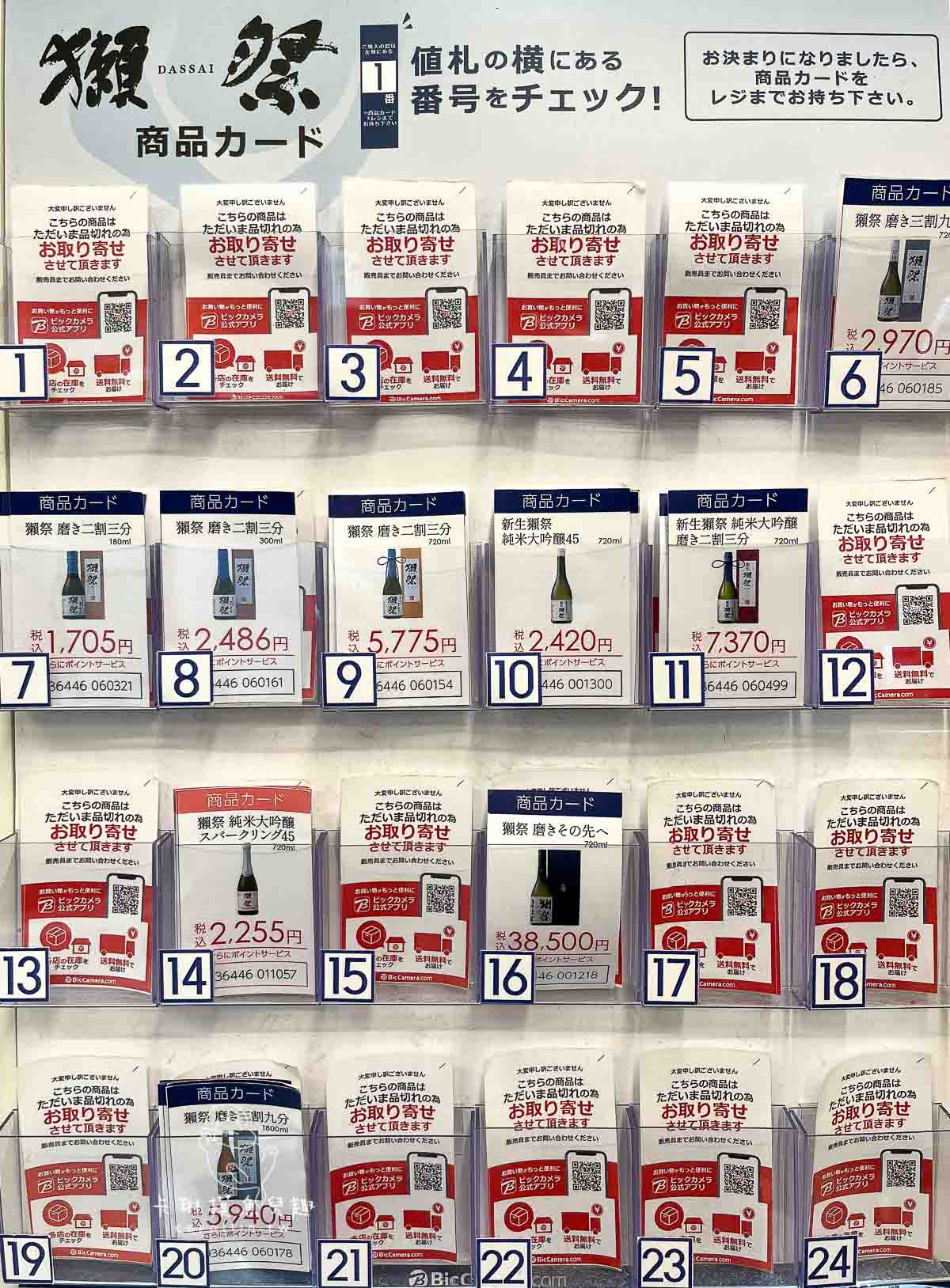 Bic Camera 是獺祭的正規取貨店,應該是因為跟獺祭的合作關係更密切,店裡的獺祭酒款非常豐富齊全,一些平常不太會看到的獺祭酒款也都有在販售。