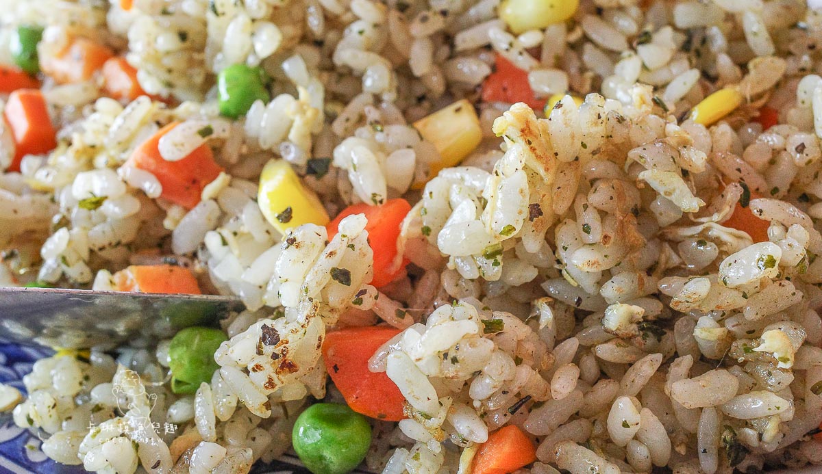 茶葉炒飯炒得粒粒分明,香氣也很不錯,就看大家對三色豆的接受度了。