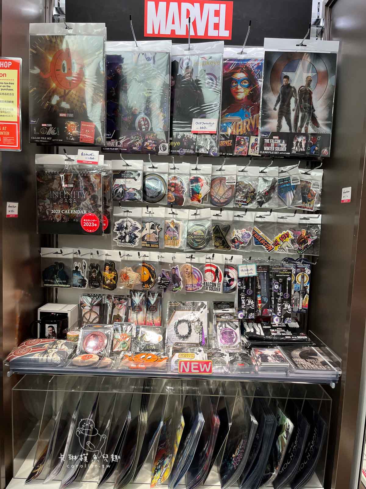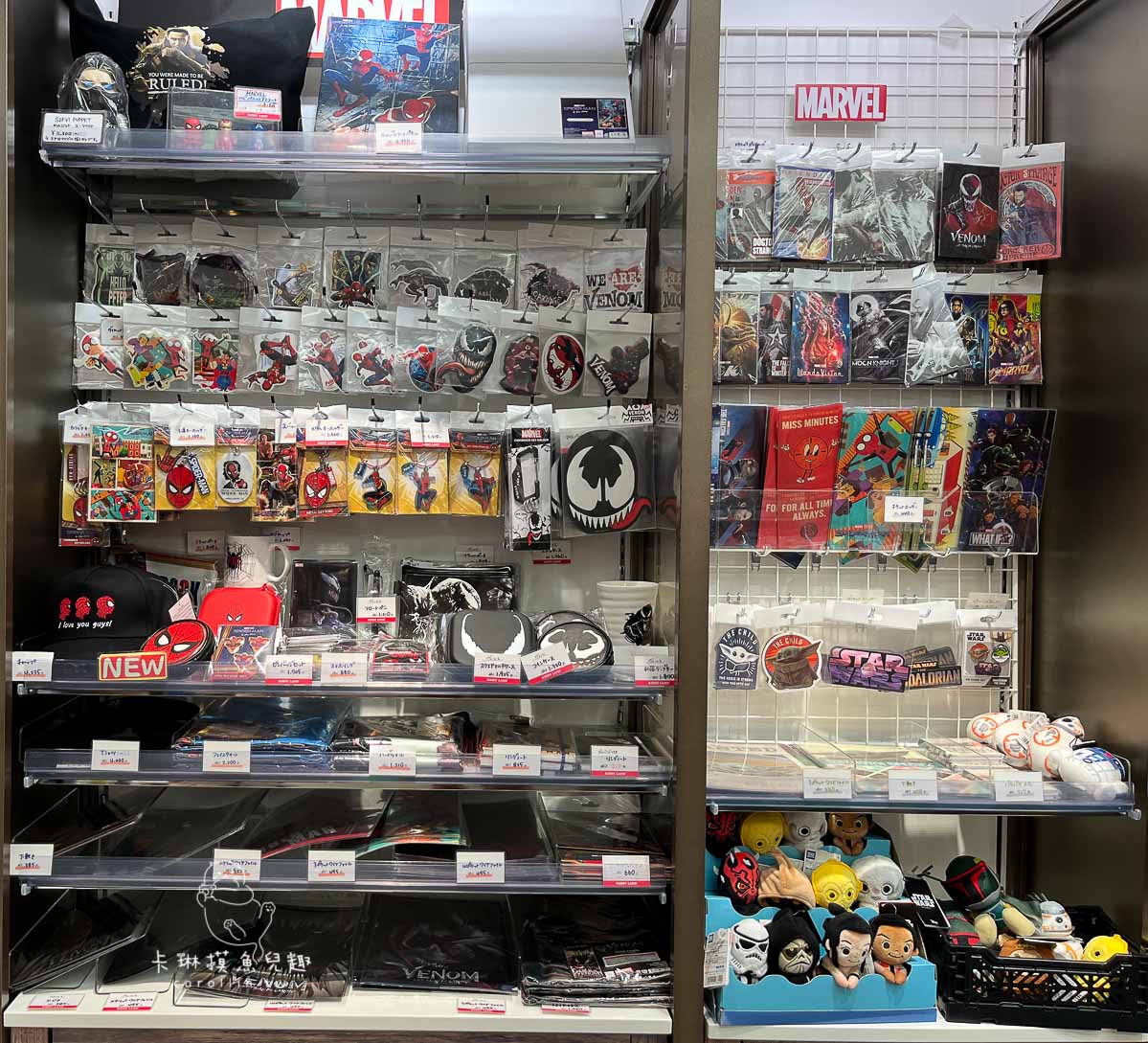 除了可愛夢幻的迪士尼商品,DISNEY 商店也有漫威周邊商品專區,這間店目前是比較多蜘蛛人的商品,新宿那邊的話就比較平均一些。