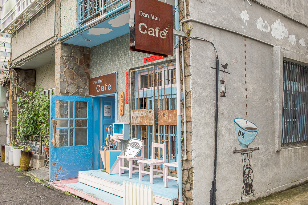 台中國家美術館、綠園道、忠信市場及審計新村附近的 Dan Man Cafe 丹曼咖啡,DM Cafe 除了是超好拍照的文青感十足的老宅咖啡店之外,最大的特色是百元有找的價格就能用碗喝咖啡,以及可愛的甜點搖擺小山丘及搖擺富士山。