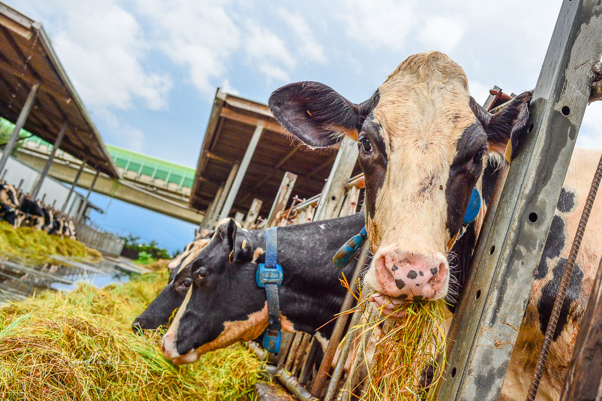 即使下著暴雨,乳牛們吃牧草的興致也絲毫不減,一直吃吃吃~