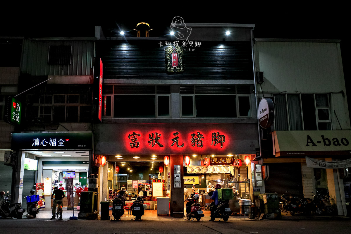 後來查了一下,原來台中豬腳飯三大名店:富狀元豬腳、富鼎旺豬腳和阿水獅豬腳,其中兩家富字輩的豬腳店是兄弟,而他們和台北富霸王豬腳是親戚,兄弟兩人曾北上到富霸王學習,之後才又在台中各自開店,因此不只店名有那麼點感覺,口味也是以富霸王豬腳為基礎去各自發展,對比較吃不習慣阿水獅(卡琳爸覺得略甜不愛)的北部人來說,這兩間會是比較合口味的豬腳店。