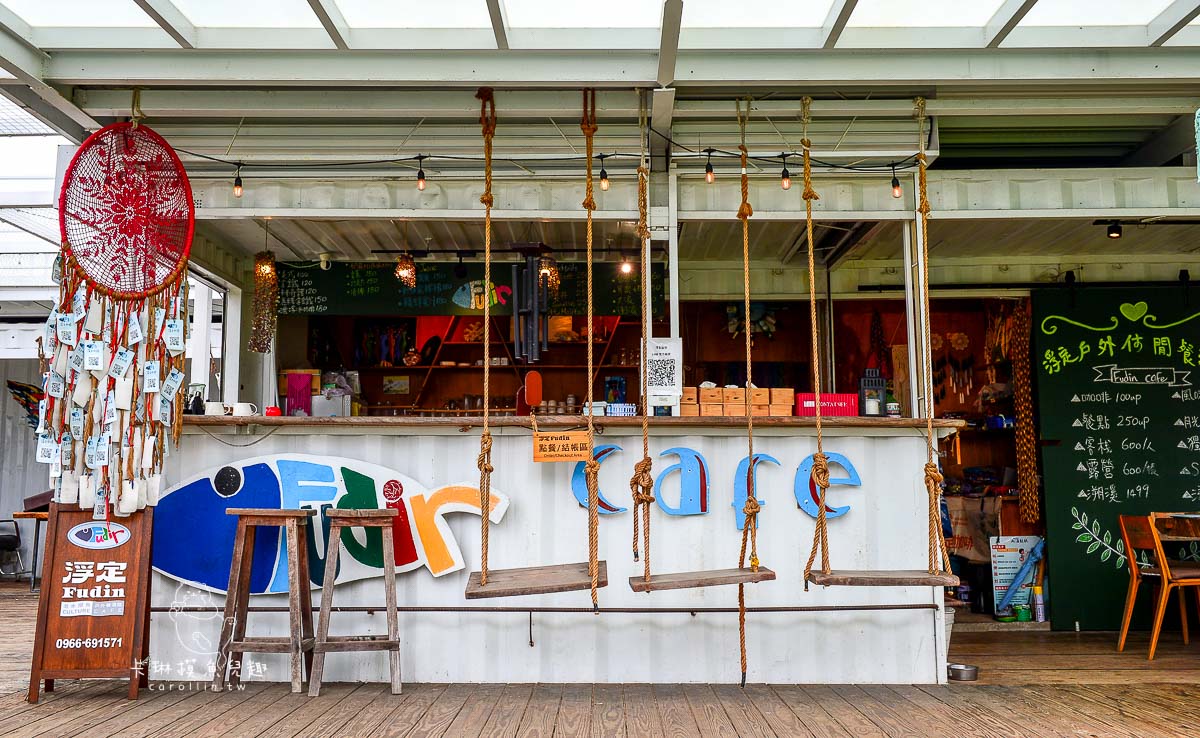 《fudin cafe 浮定戶外休閒餐酒館》的「Fudin」是阿美族語「魚」的意思,店家希望大家在台東旅遊渡假時,不管是物理上還是心理上都可以好好的混水摸魚。