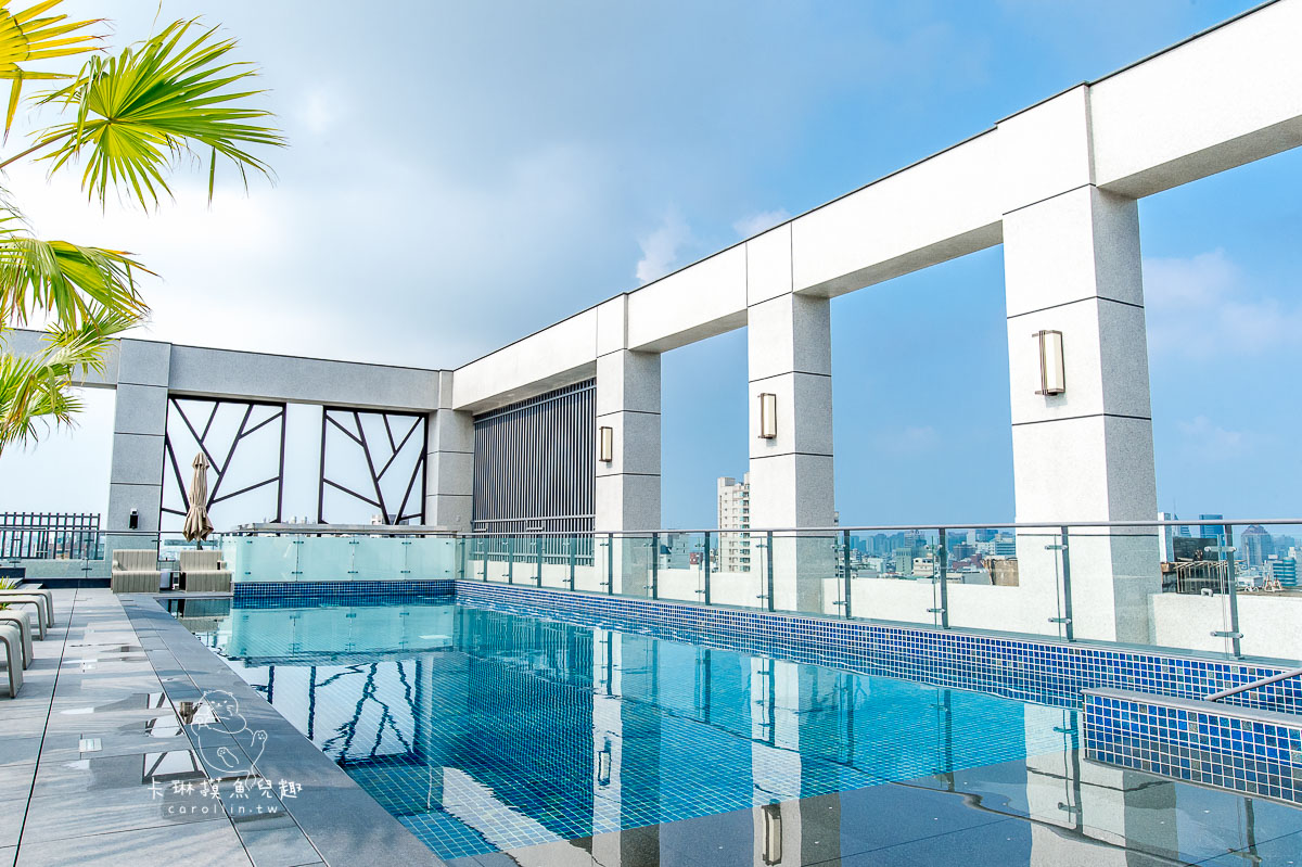 禧榕軒大飯店頂樓設置空中花園泳池及親子戲水池,搭配岸邊的搖曳樹影,還可以俯瞰市景,是很熱門的網美拍照打卡景點。