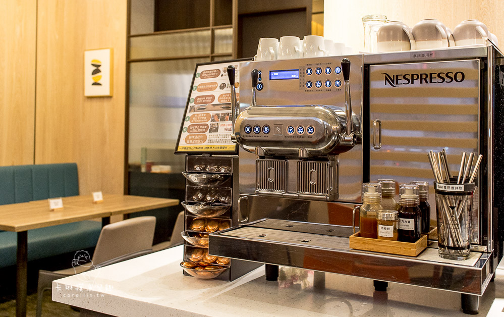 JOHO HOTEL 二樓餐廳的咖啡機也是難得看到這麼大一台膠囊咖啡機,可以做拿鐵、卡布奇諾等各種咖啡飲品,由房客自己 diy 操作機器。