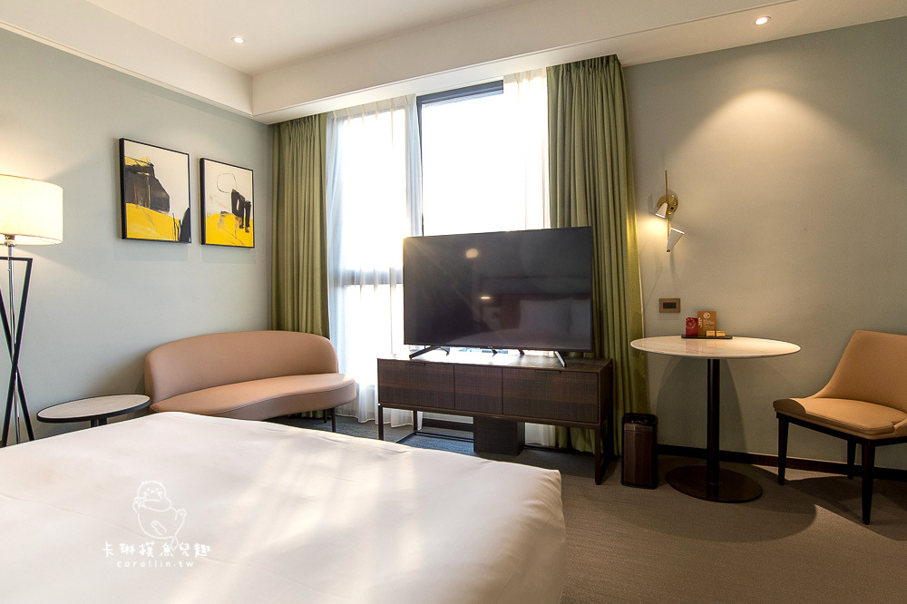 這次卡琳我是和閨密同行,住的是市景雙人房,在 JOHO HOTEL 官網上叫做雙人市景房,不同樓層的房間會以不同色調呈現,卡琳我這次住的樓層是綠色色調。