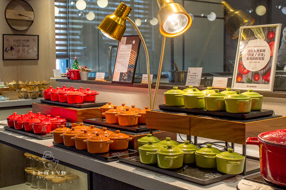 這些彩色小鍋中,裝著飯店早餐必備的經典菜色們,不過 JOHO HOTEL 的這些菜色有升級,像是綜合蔬菜、黑松露炒蛋等。