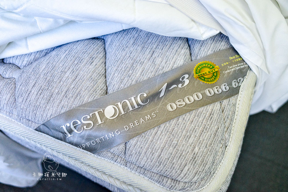第二天掀起床單一探究竟,原來是 restonic 的床墊,擁有悠久歷史的品牌床墊果然就是不一樣。