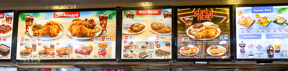 在菲律賓吃 Jollibee 不用擔心看不懂菜單,菜單本身是寫英文,且大多數的餐點都有圖片可以參考,英文列表只是一些不同分量的版本,基本上看著菜單點餐就可以囉!