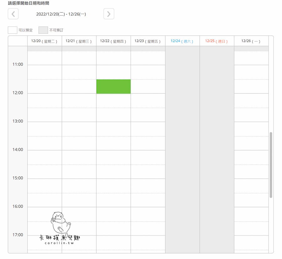 點選進去說要檢測修理後,會先出來一張日曆,白色空格代表這個時段還可以接受預約。