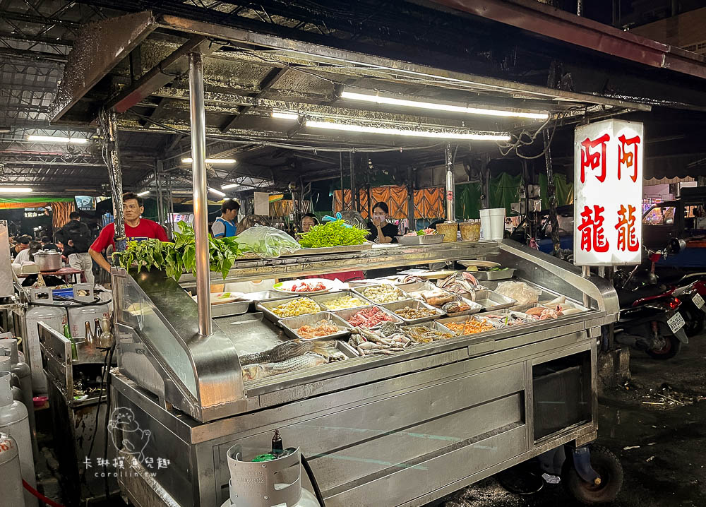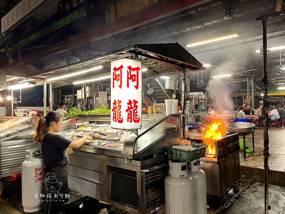 看一圈下來,發現阿龍快炒的生意最好,裡面坐滿了人,店家也是手不停歇的一直在瘋狂炒菜。
