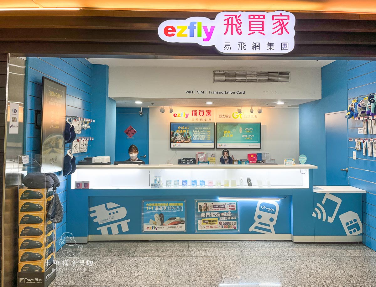 第一航廈的取貨點在出境安檢站前方的 ezfly飛買家,到現場和櫃檯工作人員說要領 kkday 購買的網卡,拿出憑證 QRcode 掃碼就可以囉!