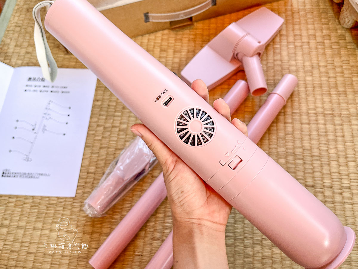 這次入手開箱的《SANSUI山水輕淨吸迷你無線吸塵器》,粉紅色的顏色超可愛,完全顛覆對家電用品不是黑就是白,要不然頂多出現些許紅色和灰色搭配的印象。