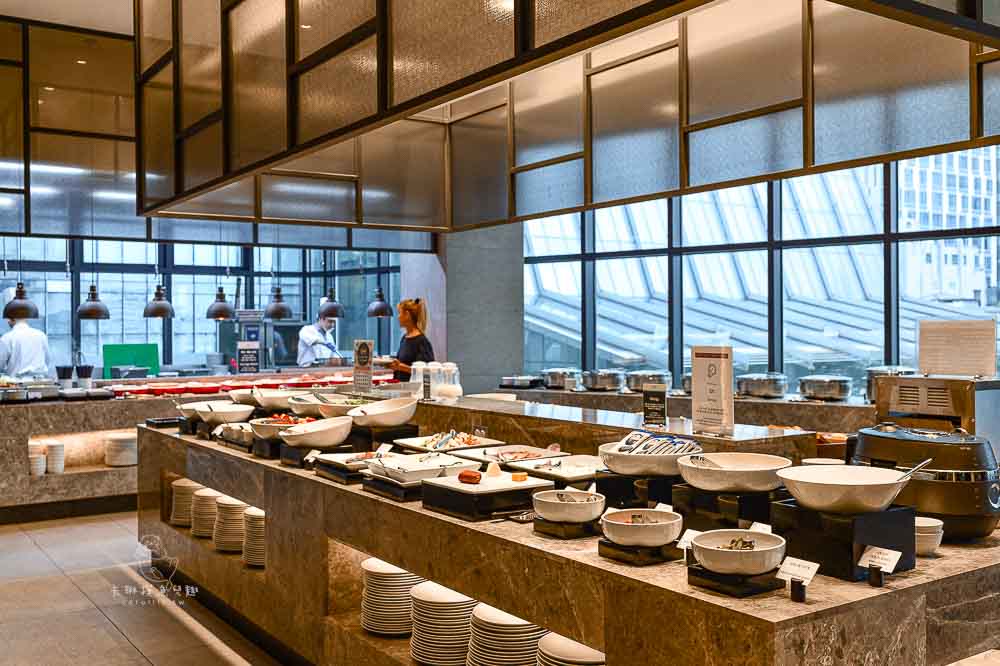 韓國首爾明洞朝鮮福朋喜來登飯店早餐在三樓的 Evolution 自助餐廳用餐,好喜歡這間餐廳的氛圍~