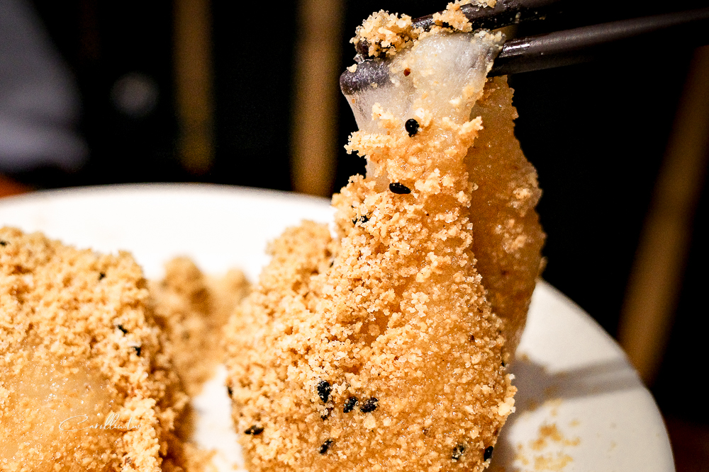 燒麻糬是我每次來雙連圓仔湯,都會點的小甜點,這次本來打算點鹹甜各一的綜合口味,結果還是點成跟平時一樣的甜口味,還好至少有劃對半糖甜度。