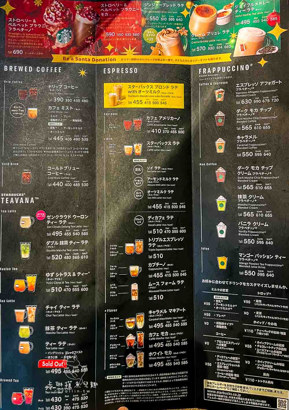 話說,有沒有人想看一下日本星巴克的菜單?