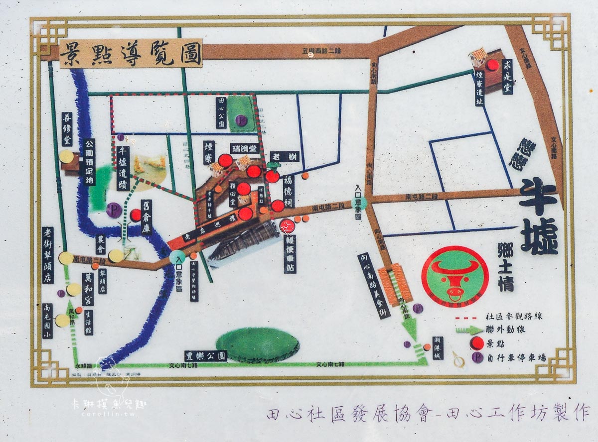目前牛墟輕便車站旁邊附有整個南屯的旅遊景點木版雕刻及完整的解說牆面~