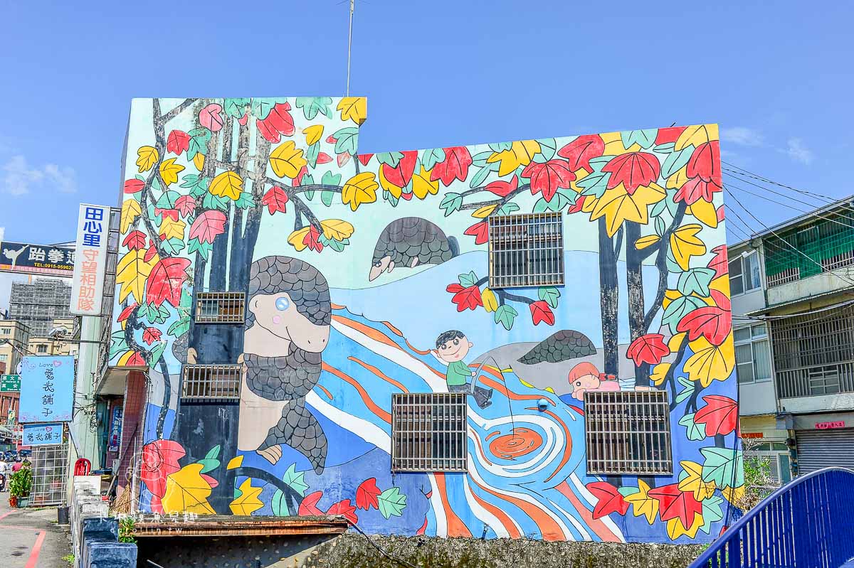 穿山甲彩繪牆:穿木屐躦鯪鯉,老街與穿山甲的故事