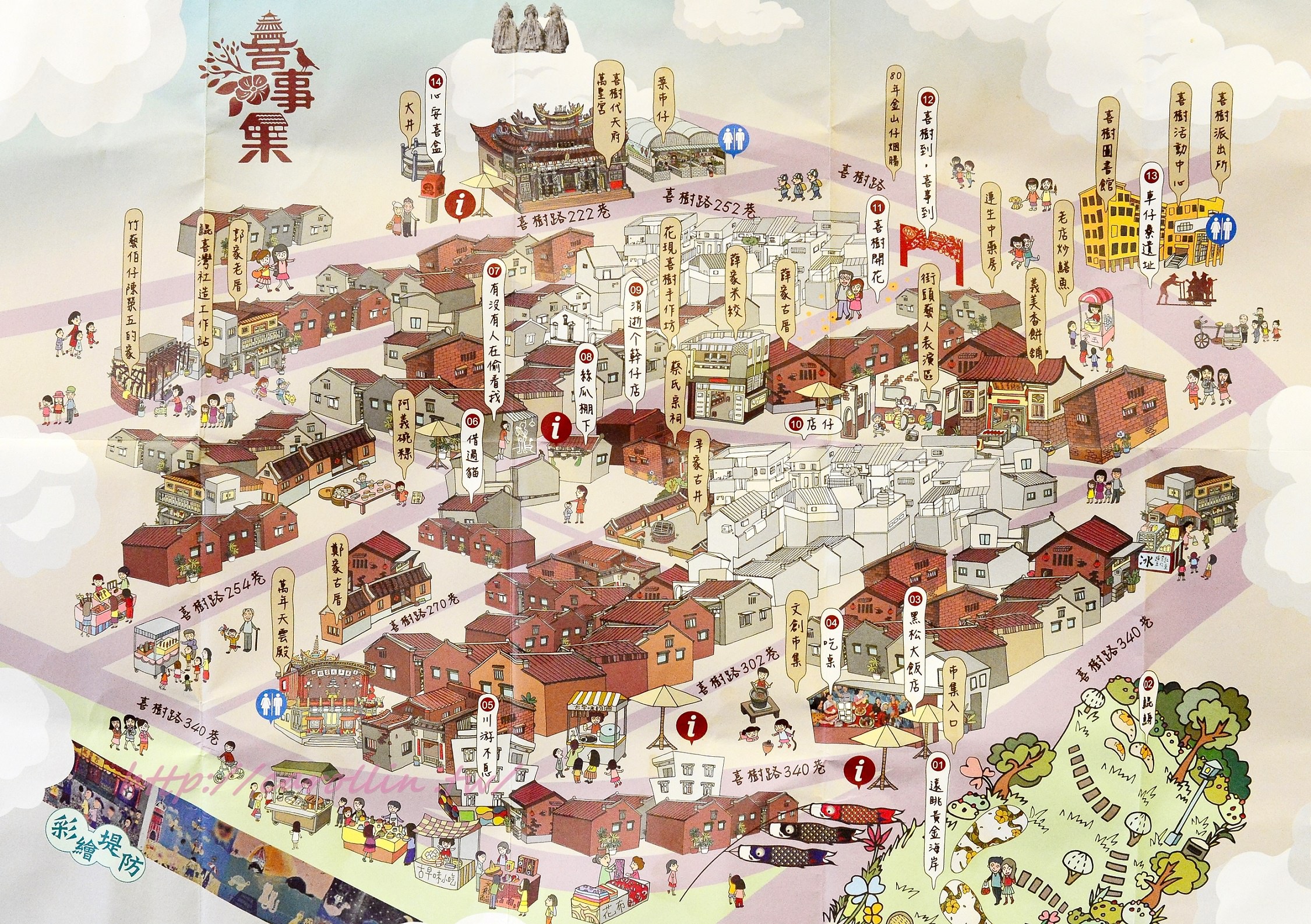 ※ 喜事集聚落巷弄 & 商家位置地圖為翻拍台南南區區公所印刷之喜樹導覽 (上圖)