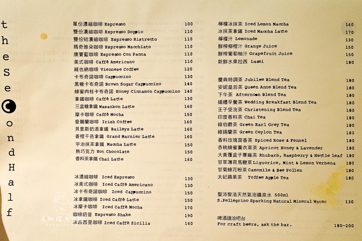 至於低消的部分,《The Second Half Cafe》低消是每人一杯飲料,同一人點飲料+食物可折抵 30 元。