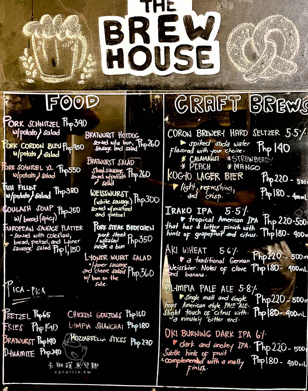 光是「菲律賓精釀啤酒冠軍」這頭銜就已經必須要來喝一杯(至少一杯),到 The BrewHouse Coron 店裡再看看菜單價格,只喝一杯真的說不過去了,500ml 價格才訂 220 披索,還不喝爆它!