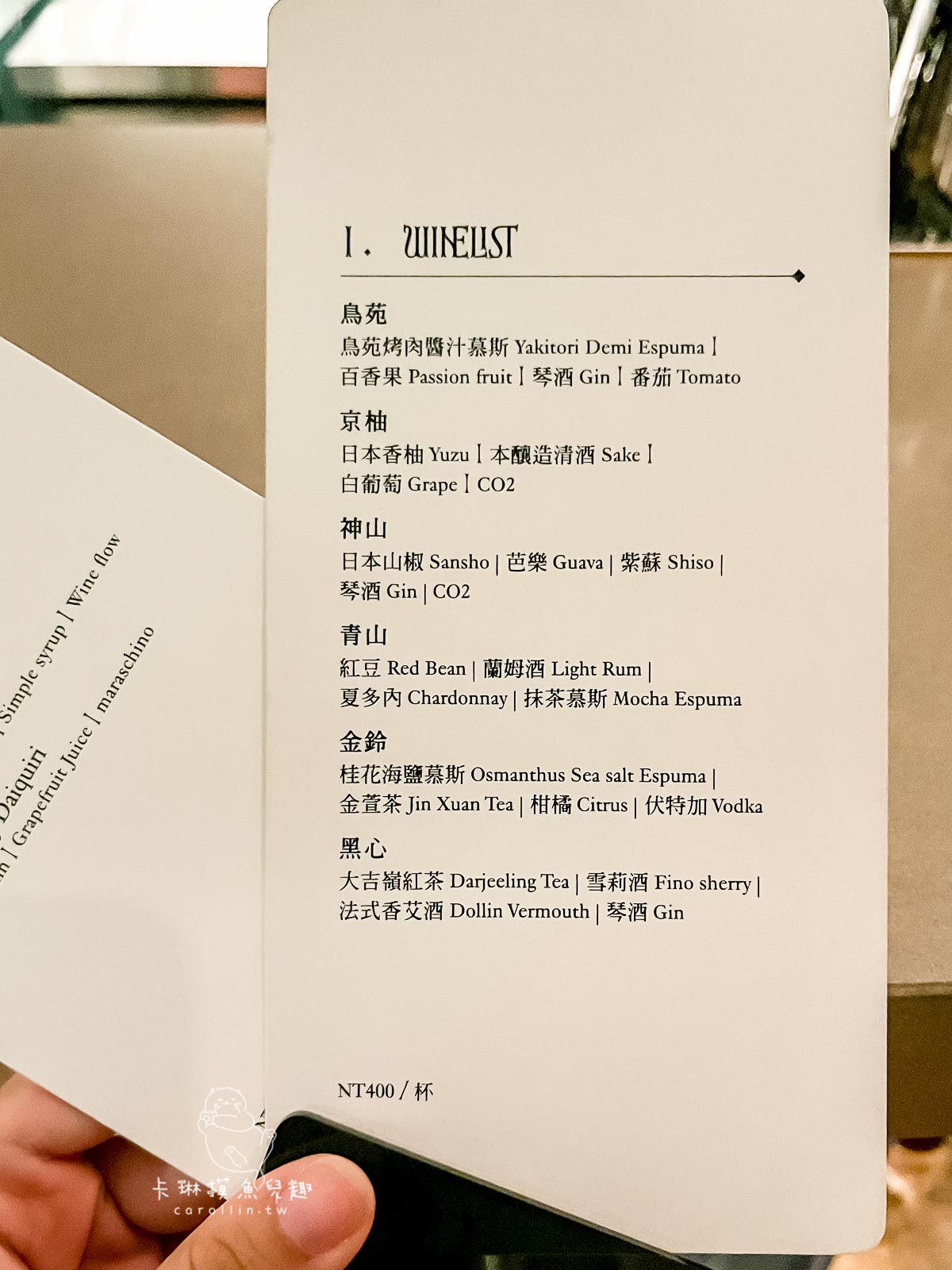 尤其第一張中文字的酒單,每一杯酒都讓人很嘗試看看,第一杯「鳥苑」就先來了個下馬威,烤肉醬汁慕斯和調酒搭一起到底是怎麼回事?