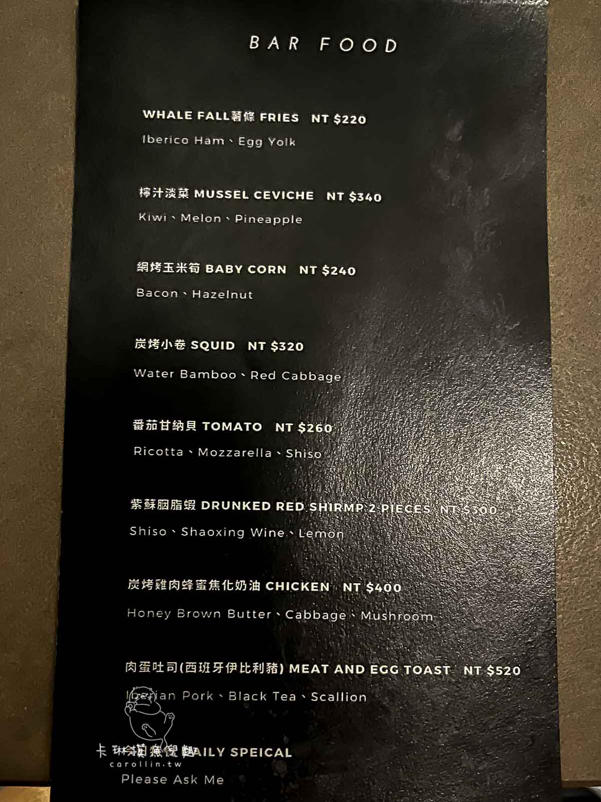 來看看《Whale Fall》的菜單,品項不多,但都很有特色。