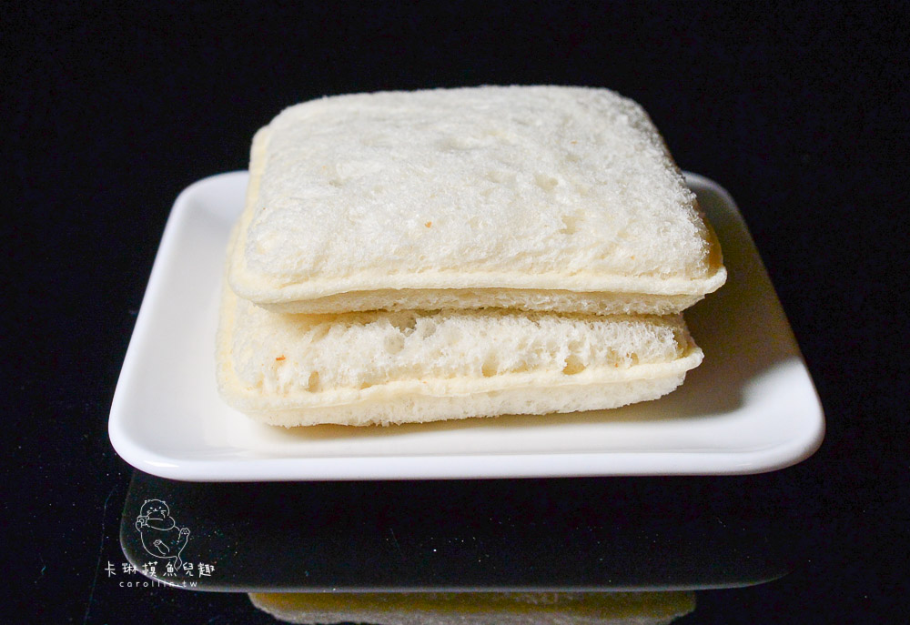 可以看到餡料是完完全全包在土司中間,邊邊還有緊密壓合,不用擔心整個咬下去會爆漿噴得亂七八糟。