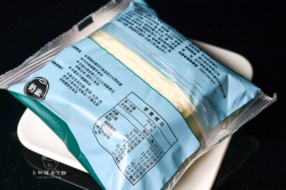 這一包249大卡,可能因為巧克力濃度夠高,熱量其實比我預想的低,奶素成分吃素的朋友也可以考慮!